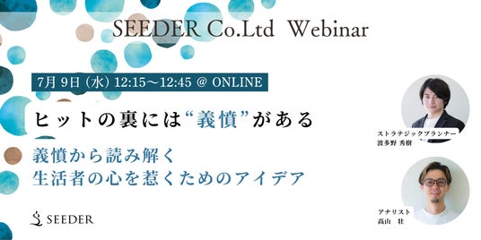 本セミナーでは、SEEDERが提唱する「義憤発想」から、身の回りのヒット商品をひも解き、商品・サービス誕生の“起点”を探ります。
