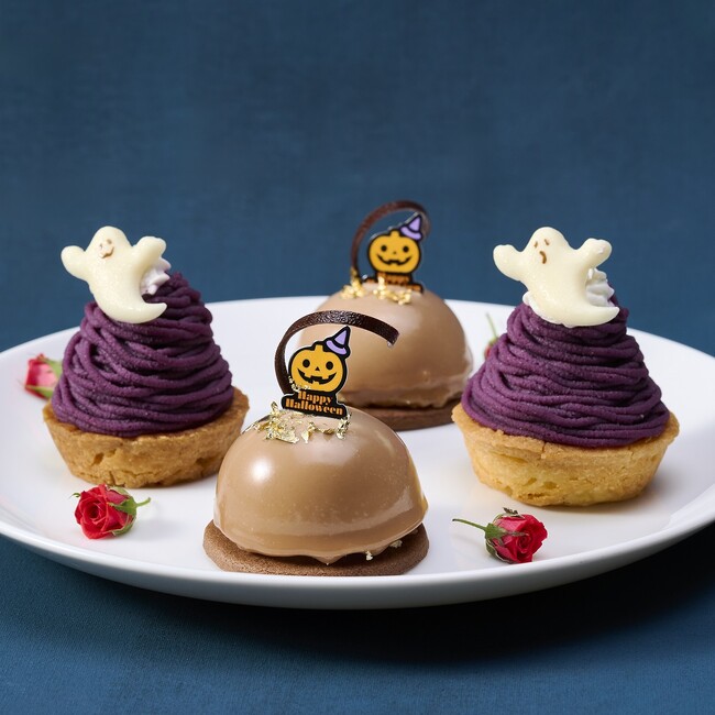 〈上段〉ジャスミン、紫芋とハロウィンおばけのモンブラン