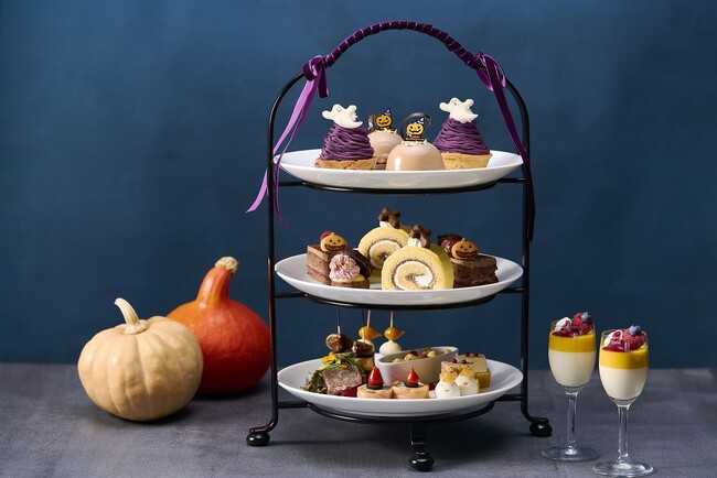 日中とは異なる表情を見せるシックで落ち着いた空間で、ハロウィン気分を楽しむスイーツとセイボリーをフリーフロードリンクとともにご堪能ください。