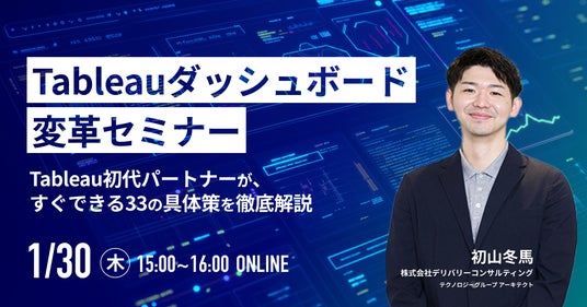 データリテラシーの向上を通じてデータドリブンカンパニーへの変革を支援する株式会社デリバリーコンサルティング(本社:東京都港区、取締役CEO:内藤 秀治郎)は、Tableau Japan設立時からのアライアンスパートナーとして多くの企業を支援してきたナレッジをもとに、ダッシュボード活用の課題を解決するための具体的なポイントを紹介するWEBセミナーを開催いたします。
