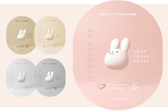 「ふわふわうさちゃん3Dマスク」は、ふわふわな肌ざわりと3Dバイカラーのファッション性を兼ね備えたアイテムです。通常の「ふわふわうさちゃんマスク」では肌荒れや負担を感じる方に支持され、2021年1月以来、累計販売枚数1,000万枚以上の大ヒットとなっています。この新しいマスクでは、肌ざわりを保ちつつ、美しい肌色を演出するバイカラーとフェイスラインを引き立てる3D構造が追加され、ファッション性も向上しています。