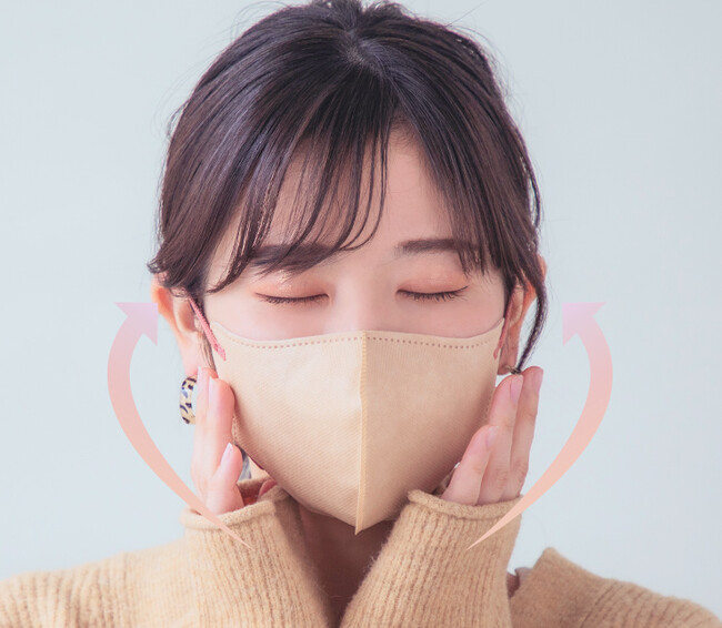 美しい顔のシルエットを引き立てるために、立体型のセンタータイプを採用しています。このマスクはV字のシルエットが特徴で、顎のラインをよりシャープに演出します。折り目や縫い目が肌に当たりにくくなり、快適な着用感を実現しています。また、口元に空間ができるため、呼吸がしやすくなります。さらに、リップメイクが長持ちしやすいのもポイントです。マスクをしていても美しさを保ちながら、快適に過ごせることができます。