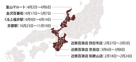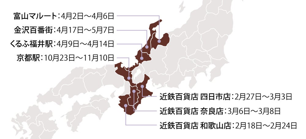 今回“ヴォヤージュの旅”第2弾で訪れるのは北陸・近畿地方! 2月18日 和歌山からいよいよスタートします。旅するお菓子が各地をめぐるこの機会、お近くの方はぜひ足をお運びください。
