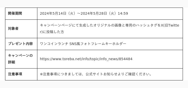 ご参加いただいた方の中から抽選で3名様に「ワンコインランチ SNS風フォトフレームキーホルダー」をプレゼント! ぜひ、チャレンジしてみてくださいね!