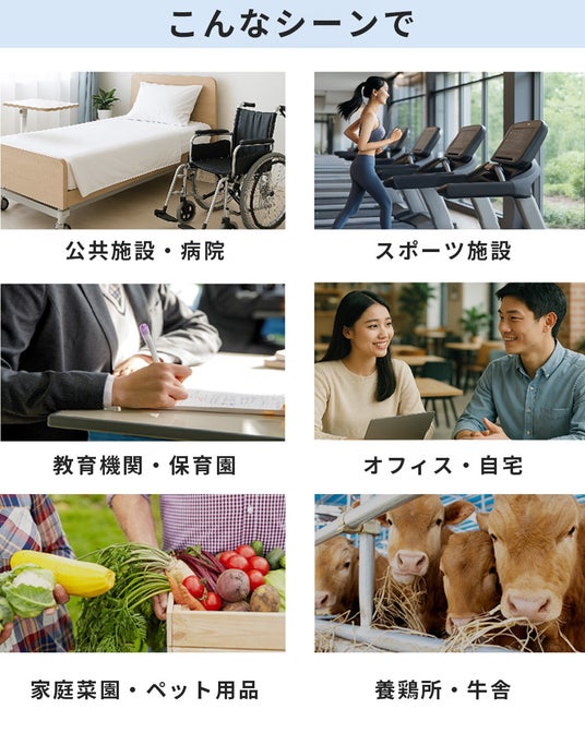 農作物、事務所、店舗、また猫カフェなどの動物施設で活用が期待できます。