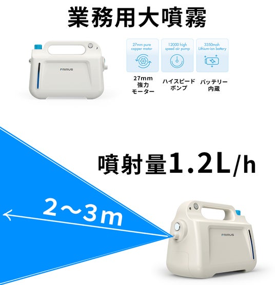 噴霧距離が2~3mで噴射量は1.2Lという大型噴霧タイプの業務用を販売開始します。