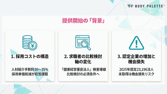 本プログラムは、健康経営優良法人の認定取得・更新を、採用戦略と経営戦略に連動させて運用することで、採用単価の圧縮と応募の質の向上を同時に実現することを狙います。