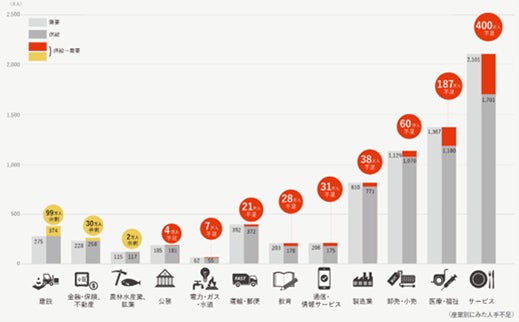 [産業別にみた人手不足]出典:パーソル総合研究所・中央大学「労働市場の未来推計2030」