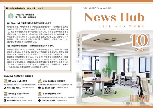 本誌は、Study Hubを利用されているパートナー(利用者)が作成・編集に携わり、支援の取り組みや各種福祉事業所の紹介を通じて、より多くの方に支援の意義を伝えることを目的としています。