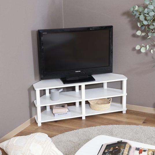 角に収まる形でお部屋のスペースを有効活用できます。画面が部屋全体に向くように配置できるので、どこからでも見やすく、快適で柔軟な暮らしを実現します。TVサイズは、一人暮らしには十分な32型TVまで対応できます。