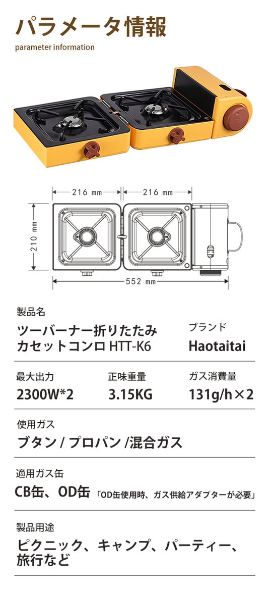 キャンプや料理好きなあなたに朗報!「HTT-K6」は高性能で多様な鍋に対応。折り畳み収納可能で携帯超自在、CB缶とOD缶両方使用可。これでキャンプがもっと楽しく、料理が一段と美味しく、便利になります!