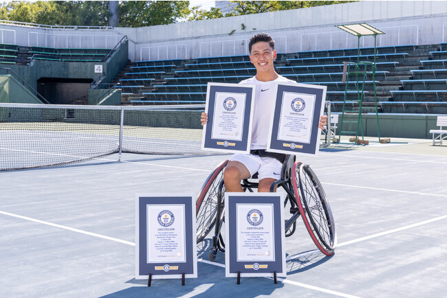 Youngest winner of the Wimbledon Wheelchair Gentlemen's Singles title ウィンブルドン 車いすテニスシングルス最年少優勝者(男子) 2023年7月16日、イギリス、ロンドンで行われたウィンブルドンにて、17歳69日で達成。