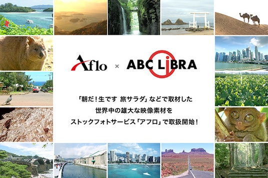 ストック写真・映像を提供する株式会社アフロ(本社:東京都中央区、代表取締役:青木紘二、以下「アフロ」)は、朝日放送テレビの人気番組「朝だ!生です 旅サラダ」など番組制作で撮影した映像を販売・管理する株式会社エー・ビー・シー リブラ(本社:大阪市福島区、代表:大島尚)とコンテンツの委託販売契約を締結しました。