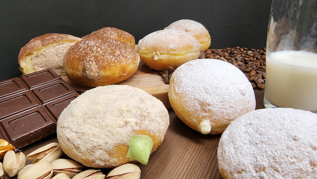 自家製カスタードとホイップクリームを合わせた「生カスタード」、コーヒーの香り豊かな「カフェ」、ピスタチオプラリネを贅沢に使用した「ピスタチオ」、濃厚チョコレートを合わせた「チョコ」の4つのフレーバーをラインナップ。通常は120円(税込 129円)のボンボローニも期間中は100円(税込 108円)で販売します。各フレーバーを食べくらべするチャンスです。