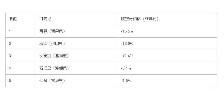 航空券価格を昨年と比較、コペンハーゲンと青森が狙い目
