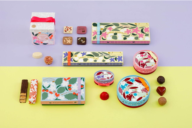 資生堂パーラー(Shiseido Parlour)は、“フルーツの花畑”をイメージしたカラフルなパッケージでバレンタインチョコレートを展開。中でも注目したいのは、果実とお酒のマリアージュを楽しめる大人のボンボンショコラ。林檎酒・カルヴァドスで風味付けした真っ赤なハート型チョコレートや、日本酒が香る柚子のガナシュを忍ばせたトリュフショコラなど5種類のフレーバーが揃い、2個入、5個入、9個入からセレクトが可能。