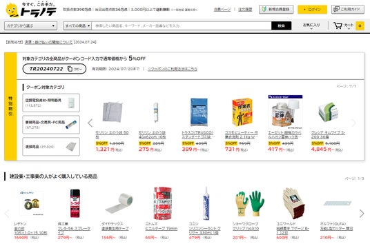 2023年2月にスタートした、事業者向け工具や資材の通販サイト。電動工具や塗料、ガーデニング用品まで約390万点以上の商品を取り扱っています。