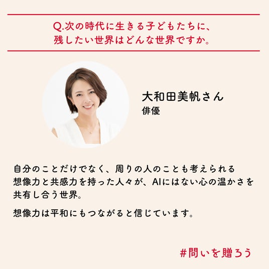また、PIECESから贈る「問い」には、各界で活躍するさまざまな方からの「お返事」が届きます。「問い」とともにご紹介していきます。