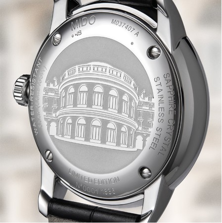 バロンチェッリ シグネチャーのスタイルの秘密は、控えめな外観と時計製造のノウハウの絶妙なブレンドにあります。直径39mmのポリッシュ仕上げのスチール製ケースに、きめ細かなアイボリーカラーの文字盤を備え、ピュアな美しさを表現しています。裏蓋には特別なエングレービングが施され、12時位置のインデックスやファサードを思わせる日付窓など、フランスのレンヌ オペラハウスの建築様式にちなんだ意匠が随所に取り入れられています。この1,836本の限定数は、オペラハウスがオープンした年にちなんでいます。