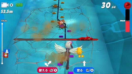 可愛いキャラクターたちと一緒に、1人から4人でプレイして、最高のスピードと高さを目指す冒険へ!