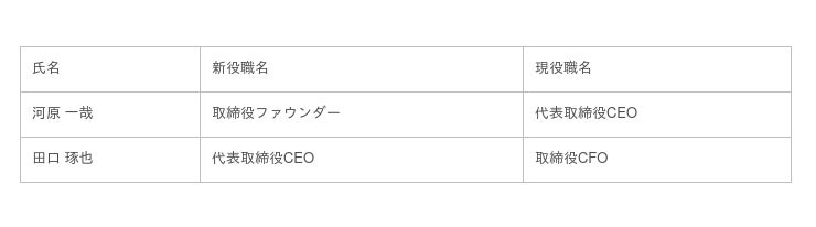 株式会社レトリバは、2023年2月1日付で代表取締役CEOの河原一哉に代わり、後任に田口琢也が就任いたします。これに伴い、河原一哉は取締役ファウンダーに就任し、新たな経営体制で更なる事業拡大及び社内組織マネジメントを強化してまいります。河原は引き続きレトリバの経営の核となる技術領域を軸に新規事業開拓や既存ビジネスの伸長を担い、田口をサポートいたします。