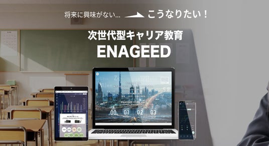 「ENAGEED」とは、一人ひとりの生徒が自信や目的意識を持ち、「自ら考え動く力」を身につけるための仕組みを提供している教育支援サービスです。直近では累計800以上の教育機関(中学・高校:700校、塾:100校)でご導入いただき、生き方を考えるための素養を育成する学習として注目を集めています。