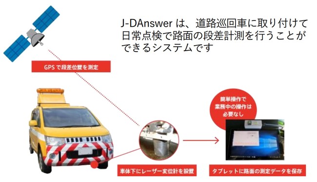 株式会社構造計画研究所と東日本高速道路株式会社、中日本高速道路株式会社、西日本高速道路株式会社および株式会社高速道路総合技術研究所が共同開発した路面の段差計測システム「J-DAnswer(R)」が、中日本ハイウェイ・エンジニアリング東京株式会社の日常点検車両「ROAD CAT」に搭載されました。