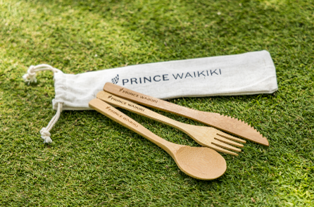 ビーチクリーンアップに必要なものを揃えたキットをお渡しいたします。またハワイの自然保護に貢献した思い出に、竹で作られたナイフ、フォーク、スプーンのセットを記念品としてお渡しいたします。