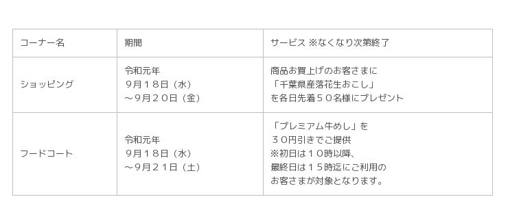 今回のリニューアルオープンに合わせて、下り線各コーナーにおいてお得なサービスを実施します。