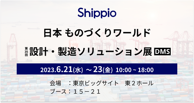 国際物流プラットフォーム「Shippio(シッピオ)」を提供する、株式会社Shippio(本社:東京都港区、代表取締役CEO:佐藤 孝徳、以下Shippio)は、2023年6月21日(水)~6月23日(金)に東京ビッグサイトで開催される「日本ものづくりワールド2023~設計・製造ソリューション展(DMS)~」へ出展いたします。