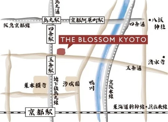 JR九州ホテルズアンドリゾーツ株式会社が展開する宿泊主体型ハイグレードブランド「THE BLOSSOM」の4施設目として京都市下京区に2022年8月26日に開業したホテルです。京都駅より地下鉄で1駅、五条駅徒歩2分の立地にあり、清水・祇園エリアへのアクセスに便利で京都観光の拠点となる最適なロケーションで皆さまをお迎えいたします。