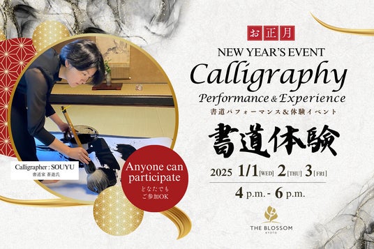JR九州ホテルズアンドリゾーツ株式会社が運営する宿泊主体型ホテル「THE BLOSSOM KYOTO(ザ ブラッサム京都:京都市下京区)」では、2025年1月1日(水)から3日(金)の3日間、どなたでもご参加いただける『お正月書道パフォーマンス&体験イベント』を開催いたします。