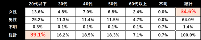 ・年齢・性別ごとに購入数の比率を比較した結果、20代以下のオーダースーツ購入者比率が20.3%、女性のオーダースーツ購入者比率が9.6%増加しており、オーダースーツを初めて購入するエントリー層の購入者が増加していることがわかった。