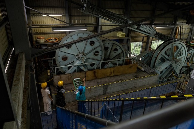 「動く仕組みを知ろう!」ワイヤーロープ解説 ⇒ 「圧巻の景色!」 点検台見学 ⇒ 「世界最大級!重量600tの重り」 重垂室見学 ⇒ 「たたみ20畳の広さ!」ロープウェイ乗車体験 ⇒ 「運転室はなんと山頂!?」 運転室内見学