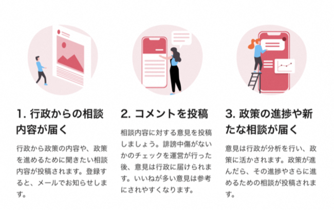 3. コメントを投稿した政策の進捗や新たな相談が、行政から届く