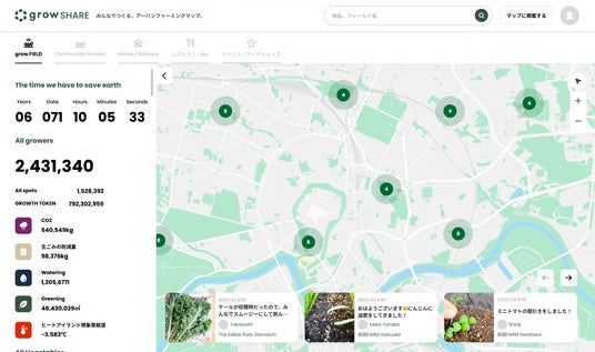 growテクノロジーが搭載されたスマートコミュニティファームや、近くのコミュニティファームが探せ、さらに農と食に関するアクティビティも探せて参加できるサイト「grow SHARE」。この度growシステムの大幅アップデートに伴い、2024年5月頃にリニューアルいたします。