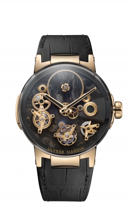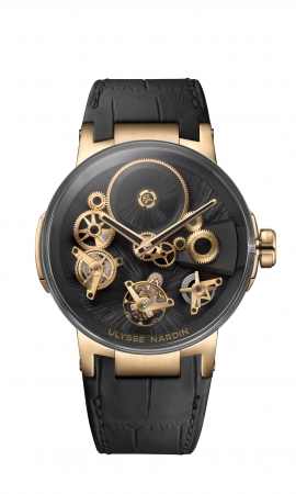 「エグゼクティブ フリーホイール」は文字通り時間が宙に浮いているように見え、研究開発に数年を要した革新的なムーブメントは、44mmのケースに収められます。ギアトレインとブリッジは、他の部品と一緒に宙に浮いているように見え、部品の絶妙なバランスが調和しています。UN-176ムーブメントは全て、スイスのユリス・ナルダンのマニュファクチュールで開発しています。真の時計愛好家のためにデザインされた「エグゼクティブ フリーホイール」は、その全てにおいてテクノロジーとデザインが完璧な統一感を醸し出しています。