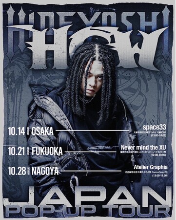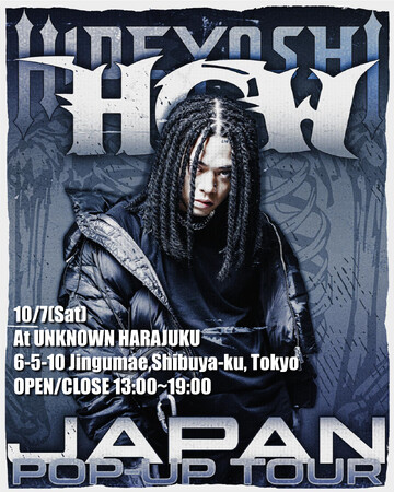 各会場に「Hideyoshi」が来店し、POPUP当日¥10,000(税抜)以上をご購入のお客様に、特典としてHideyoshiとの写真撮影とサイン会を予定しております。