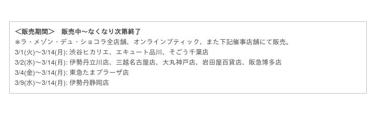 【ラ・メゾン・デュ・ショコラ 取扱い店舗について】