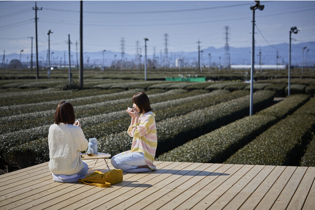 静岡、京都に並ぶ日本三大銘茶 狭山茶の主産地の景色を活かした茶畑テラス「茶の輪(ちゃのわ、2023年3月10日オープン)」。狭山茶の新たな飲用機会創出、観光振興、狭山茶振興、地域経済活性化へと輪を広げていくことを狙う官民連携事業。目の前に広がる絶景を眺めながら、当地の狭山茶を味わいながら自由で、贅沢な時間を過ごすことができます。