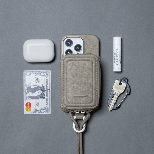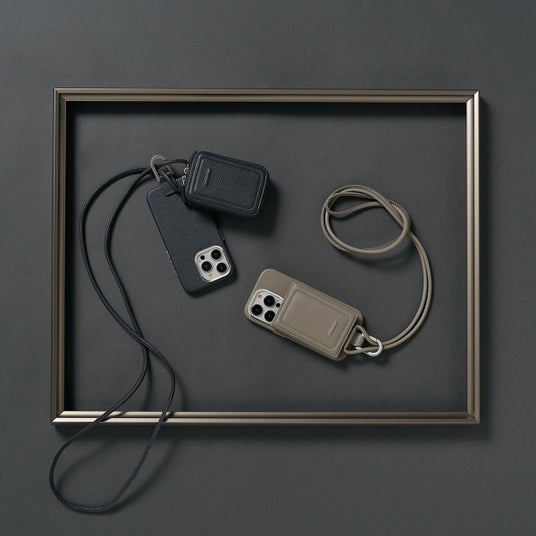 「ストラップ一体型アクセサリー」として、カードを2~3枚収納できる「カードケース」、カードと少量のキャッシュを持ち運べる「ウォレット」、AirPodsなど厚みのあるアイテムを収納可能な「マイクロバッグ」を展開し、用途に応じてお選びいただけます。