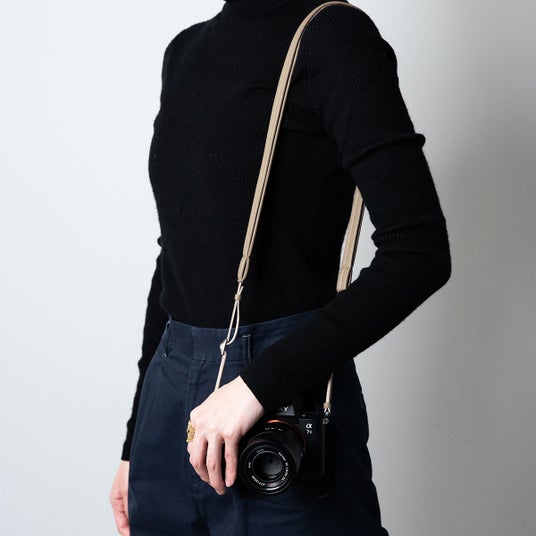 幅広い服装・シーンで使用できるように、不要な装飾を削ぎ落としたミニマルさとレザーの上質さを感じられる幅15mmの細身なカメラストラップ。屈曲に優れた弾力のあるスポンジ、柔らかな革の質感により、カメラを身につけた際に首や肩にかかる重みを和らげ、心理的なカメラの持ちやすさを実現。しなやかなストラップのため、結んで肩掛けしたり、手に巻き付けて手持ちしたりと、自由なカメラの持ち方を可能にします。
