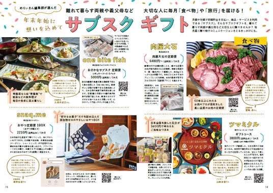 家族と集まる機会も増える年末年始。めりぃさん世代の両親・義父母に送りたい、サブスクリプションサービスのプレゼントをご紹介。定期的に届く食べ物やお菓子、さらに家電やおしゃべりロボット、旅行など、ジャンルはさまざま!届くたびにコミュニケーションをとるきっかけにもなる、サブスクギフト。ぜひ年末年始の贈り物として検討してみはいかが?
