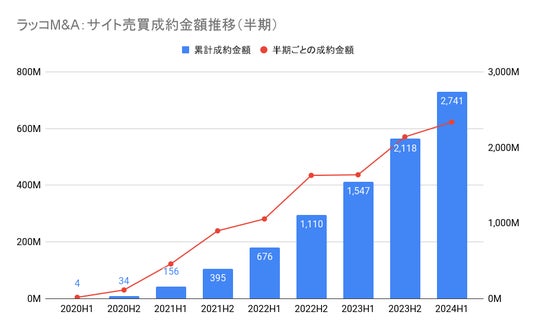 ラッコM&A:サイト売買成約数金額推移(半期)