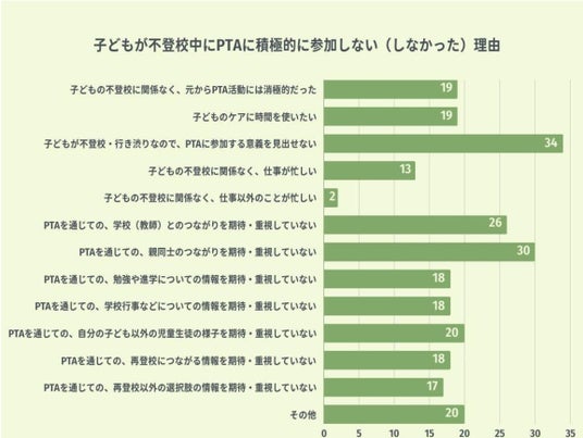 - 子どもが不登校・行き渋りなので、PTAに参加する意義を見出せない:34件