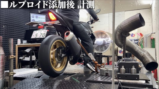 2022年式ホンダ CBR1000RR-R にルブロイドを添加し、馬力が向上するかをシャシダイナモで検証。その結果、添加前は約180馬力だったのに対し、添加後は184.44馬力を記録し、約3~4馬力の向上が確認されました。計測は気温などの条件を揃えた上で実施しており、フリクションロス(摩擦抵抗)の低減効果が数値として表れた結果といえます。