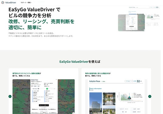 EaSyGo ValueDriver は、ビルとテナントのサステナビリティ価値を解析し、そこに内在するリスクと機会を可視化するサービスです。