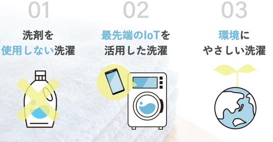wash+は、洗剤レス&IoT導入の業界最先端ランドリーです。