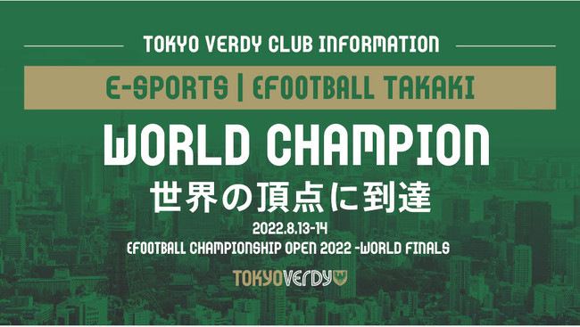 東京ヴェルディeスポーツ eFootball(TM)部門に所属するTakaki選手が全世界のユーザーが対戦するeFootball(TM)シリーズ最大規模の公式大会『eFootball(TM) Championship Open 2022 World Finals」に出場。