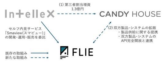 本提携は、(1)インテリックスを引受先とする第三者割当増資を通じ、CANDY HOUSE JAPAN株式会社が1億30百万円の資金調達を実施し、かつ現在セルフ内見サービス「Smaview(スマビュー)」の開発・運用・販売の委託先である株式会社FLIE(東京都中央区 代表取締役社長 井上 正賀)とCANDY HOUSE JAPAN株式会社が、(2)双方の製品・システムを連携することで、キーレスによる利便性の向上と独自の物件管理システムによる新たな世界観を実現してまいります。